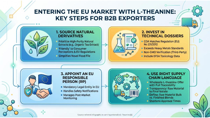 To successfully enter the EU market with L-Theanine, B2B exporters should follow these steps: